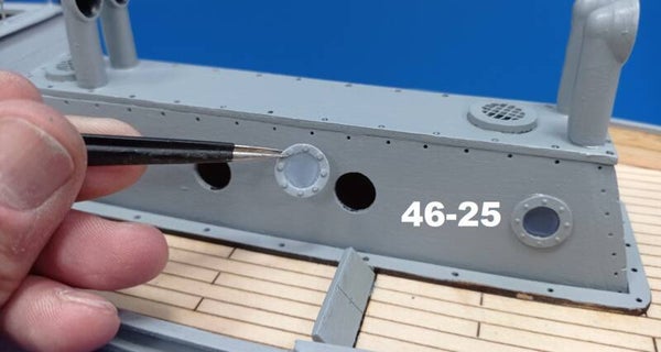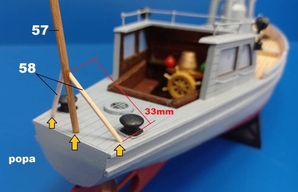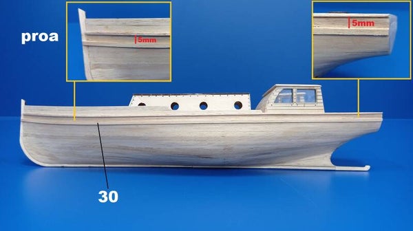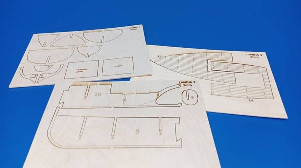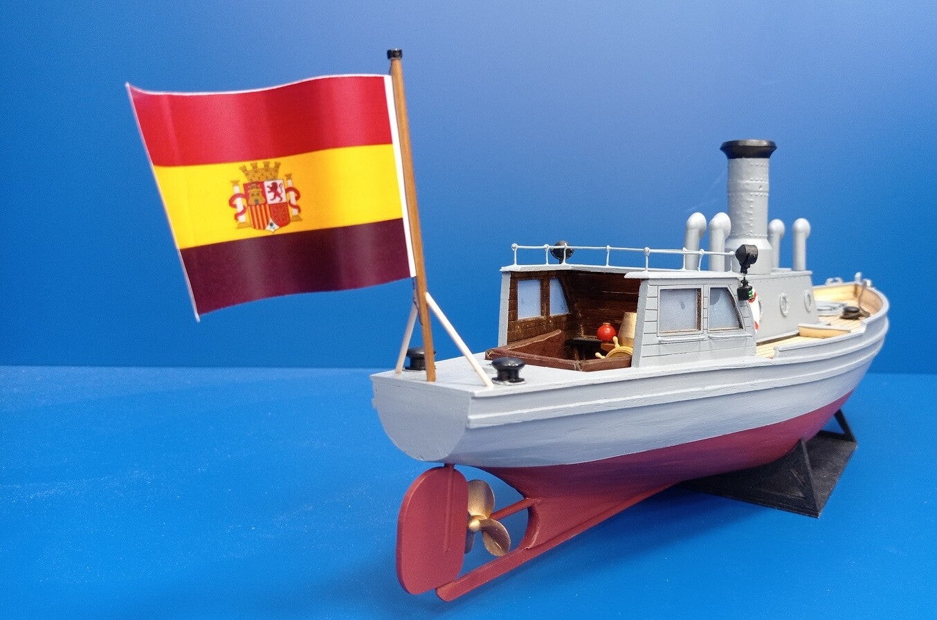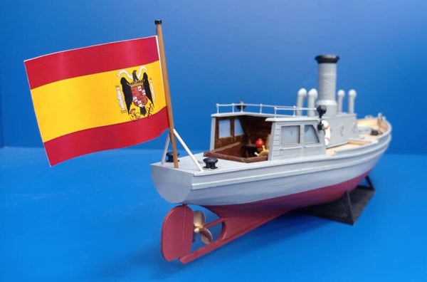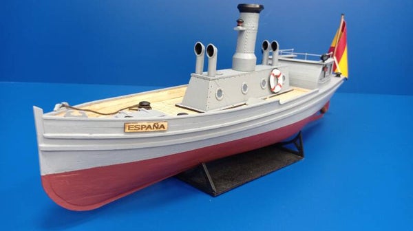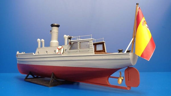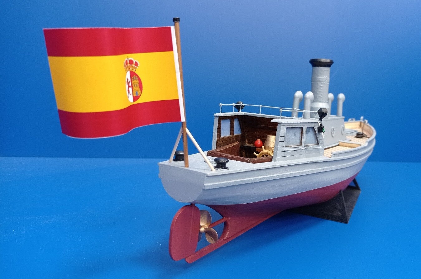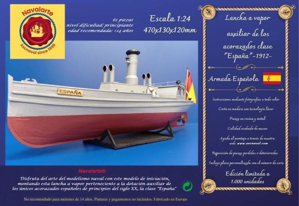 Los acorazados de la clase España, los más pequeños del mundo, fueron construidos entre 1909 y 1921. Esta lancha auxiliar iba alojada sobre cada una de las dos torres de grueso calibre situadas sobre el centro de la nave. Se usaban principalmente para el traslado del Comandante desde la rada cuando el barco estaba anclado, en la visita que obligatoriamente tenía que hacer ante las autoridades militares portuarias, así como para el embarque y desembarque de las mismas cuando visitaban el buque. El modelo puede representarse al servicio como unidad de cualquiera de los tres buques en los que sirvió (España, Jaime I, Alfonso XIII) e igualmente, con los tres pabellones nacionales que lució a popa (reinado Alfonso XIII, II República, bando nacional-guerra civil)